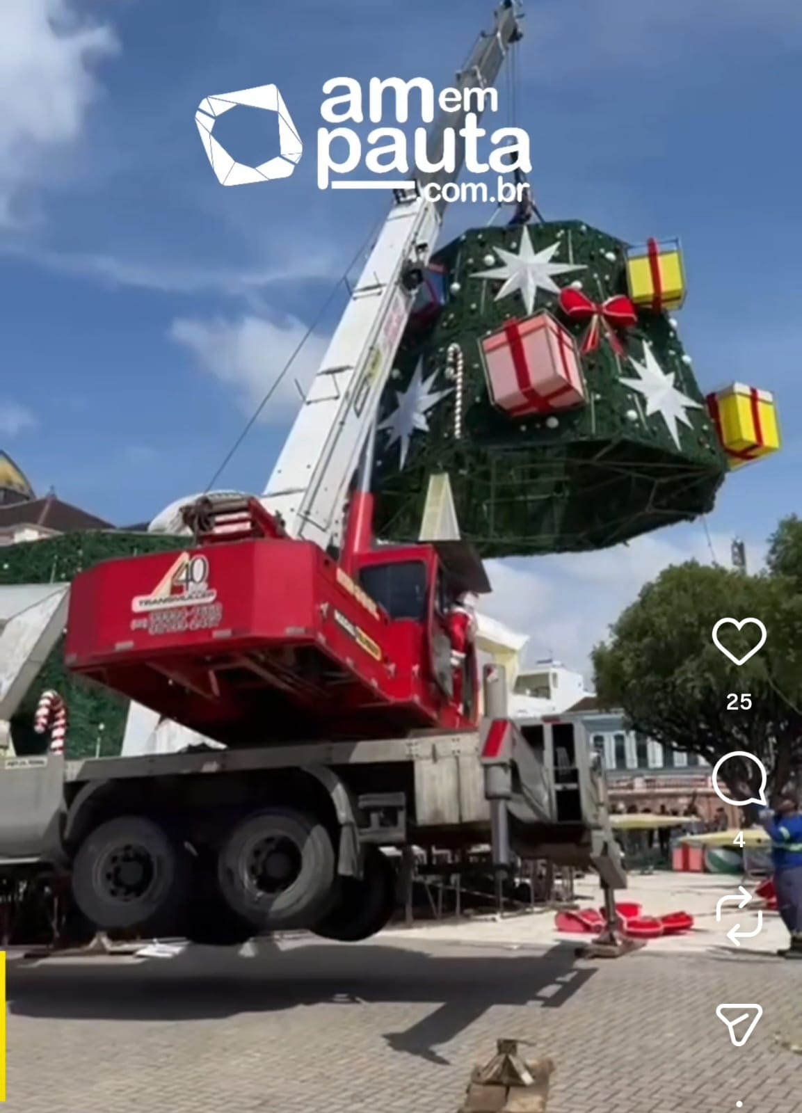 A Secretaria de Cultura e Economia Criativa do Amazonas confirmou, neste domingo (23/11), que o tombamento de um guindaste durante a montagem da árvore de Natal no Largo de São Sebastião resultou em uma morte e deixou outra pessoa ferida. O equipamento, operado por uma empresa contratada para instalar módulos da estrutura, perdeu a estabilidade e tombou enquanto trabalhadores realizavam o serviço.