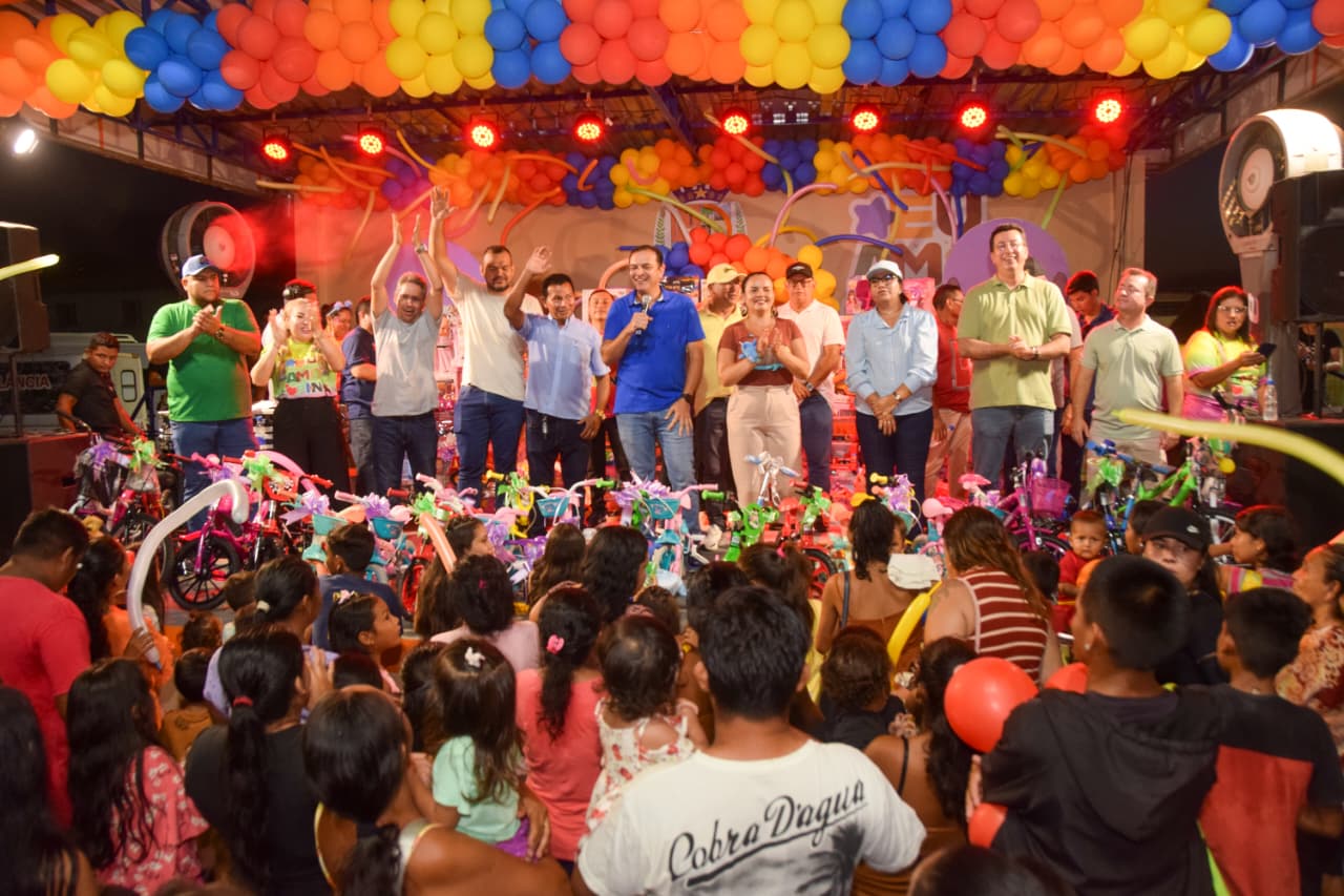 Em comemoração aos 173 anos de Parintins, a Prefeitura Municipal inaugurou neste sábado (11/10) a Cidade da Criança “Néia Brasil” (professora), na Vila Amazônia, um espaço para o lazer, a convivência e o desenvolvimento infantil. Centenas de crianças fizeram festa para receber o prefeito Mateus Assayag e a vice-prefeita Vanessa Gonçalves que distribuíram brinquedos e guloseimas para a garotada.