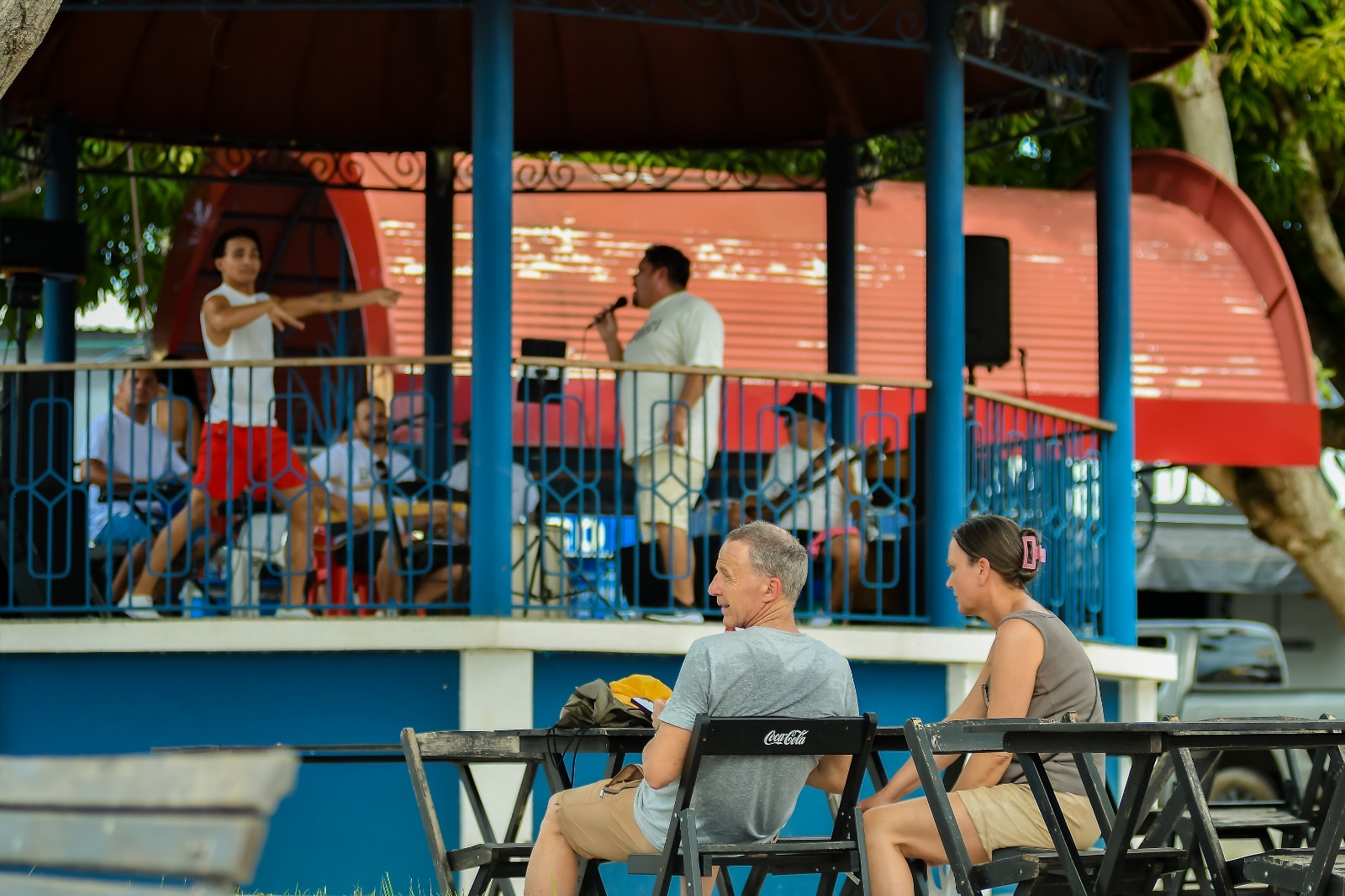 Durante a passagem pelo centro da cidade, os turistas também acompanharam apresentações culturais dos grupos “Azul e Branco” e “Tô Balanceado”, realizadas no coreto da Praça Eduardo Ribeiro, além de uma apresentação especial do Boi Garantido, realizada na Cidade Garantido, onde os visitantes puderam conhecer um pouco mais do espetáculo que marca o Festival Folclórico de Parintins.