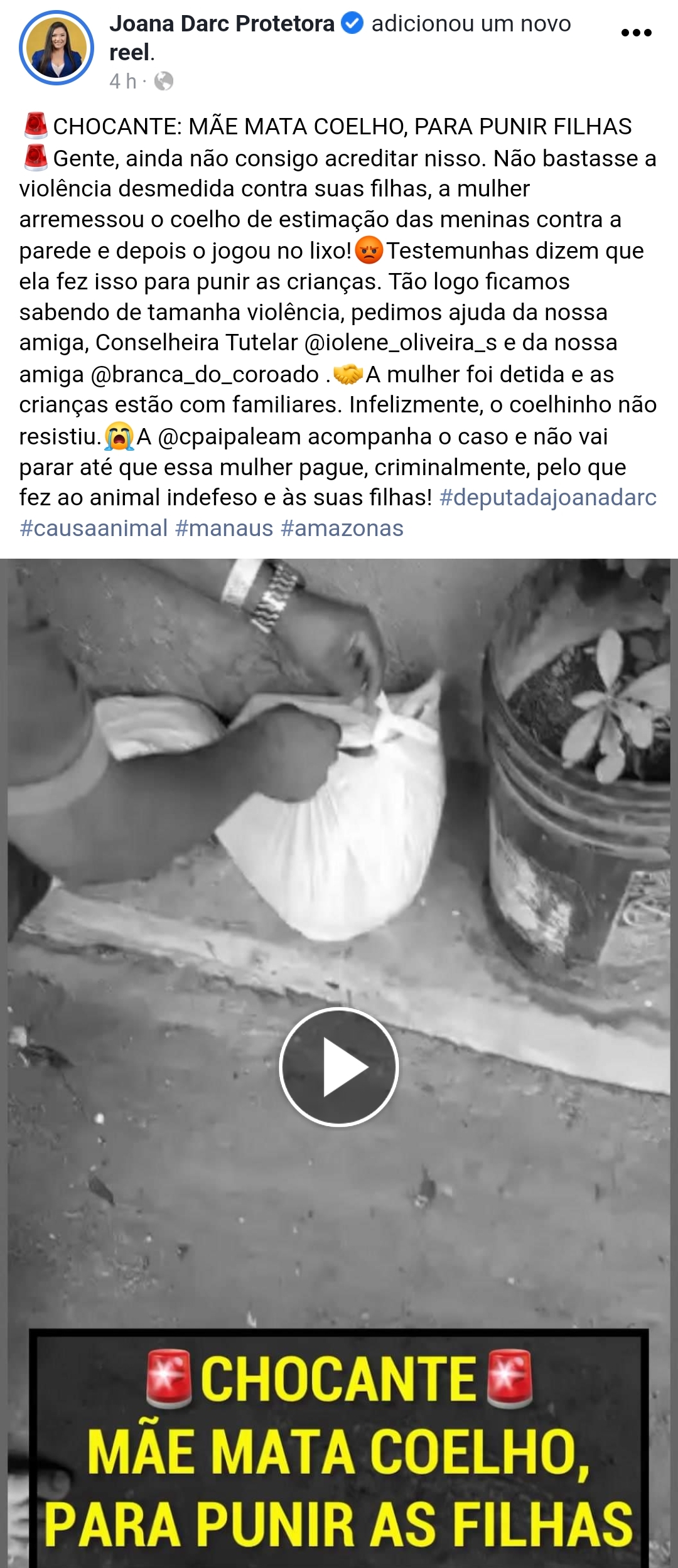 O caso causou revolta nas redes sociais. Ela informou que recebeu informações que a mulher arremessou o animal de estimação das crianças contra a parede, tirando-lhe de vida.