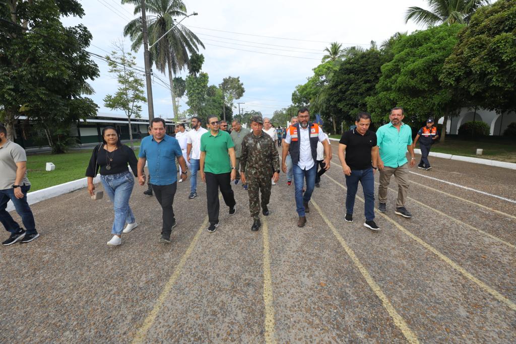 Durante visita à calha do Alto Solimões, nesta sexta-feira (27/10), para entrega de ajuda humanitária, o governador Wilson Lima conferiu o balanço do trabalho integrado das Forças Armadas e das secretarias estaduais na Operação Estiagem na região do Médio e Alto Solimões. A reunião ocorreu no 8º Batalhão de Infantaria da Selva (BIS), do município de Tabatinga (a 1.105 quilômetros de Manaus).