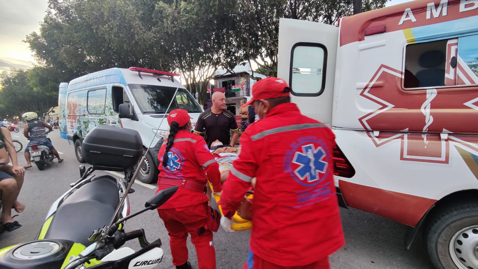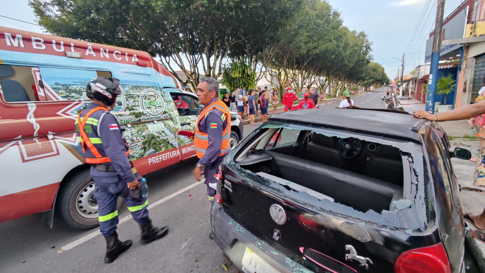 Uma moto Honda Titan bateu em um carro Gol parado na Avenida Amazonas em Parintins, deixando dois jovens feridos. Um homem e uma mulher sem identidade revelada receberam atendimento da Central de Resgate do município e levados ao hospital Jofre Cohen.