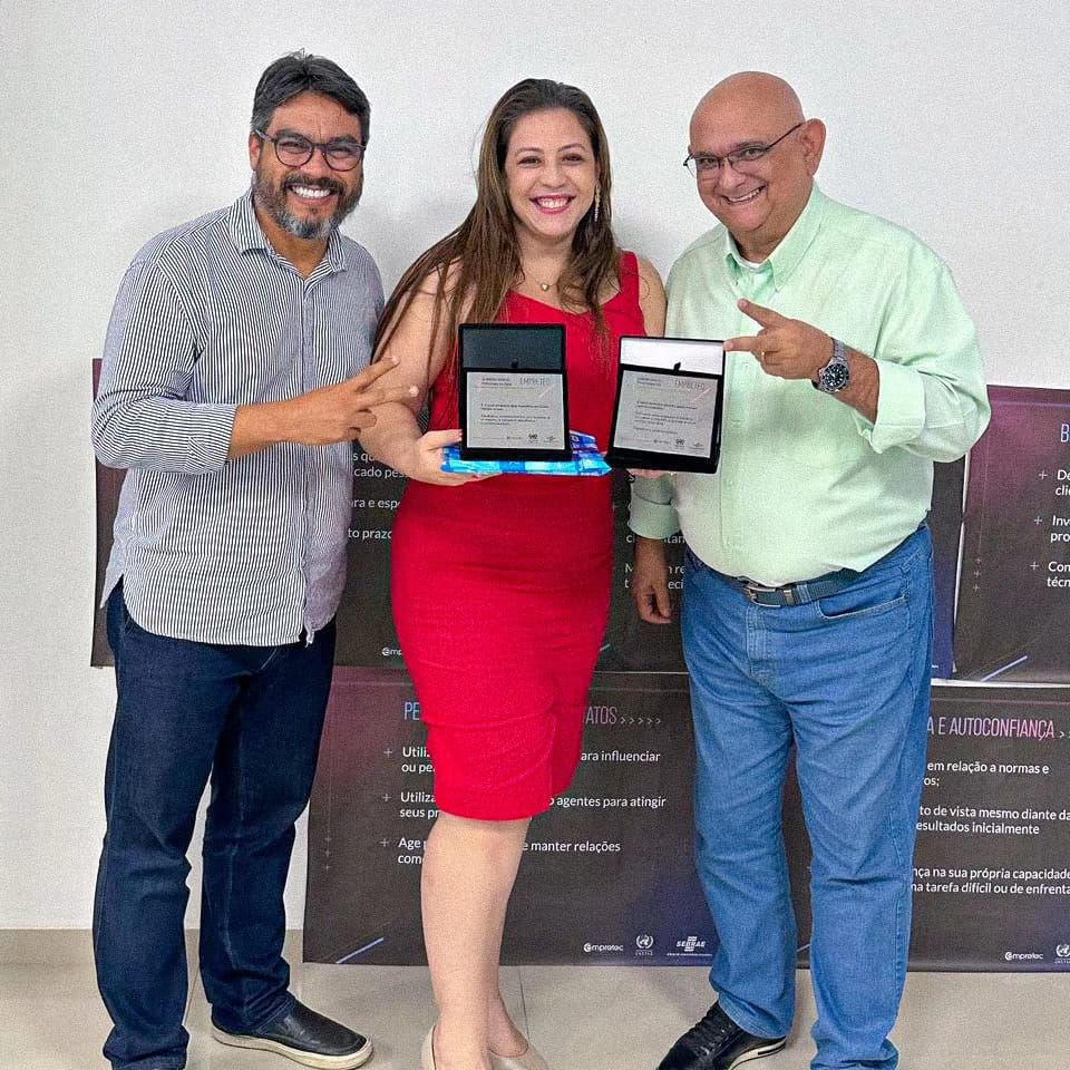 Nádia conseguiu ainda outra premiação individual dentro do Empretec, que foi relacionada as práticas empresariais. Nádia informou que foi a pessoa que mais escreveu sobre comportamentos empreendedores nas práticas da empresa - cria.