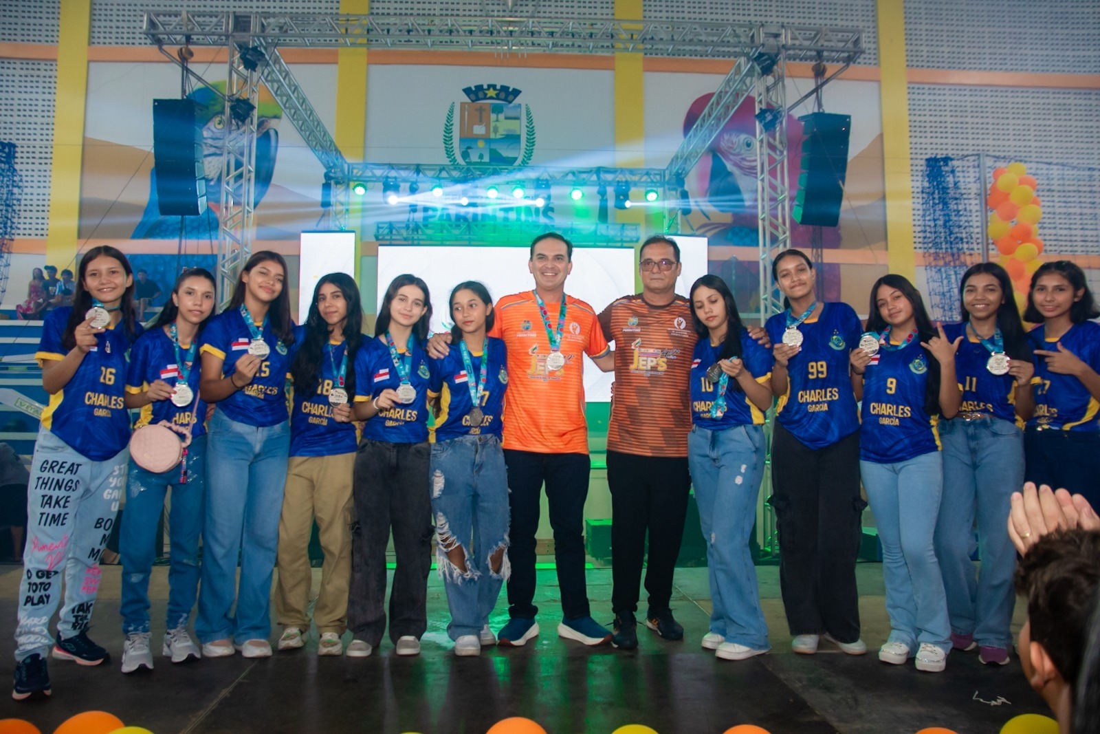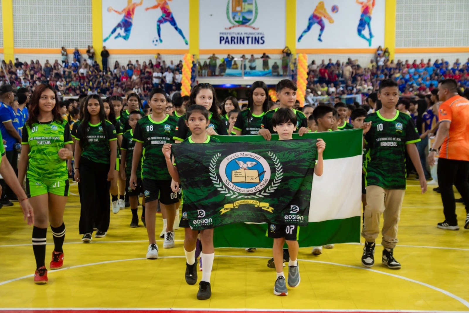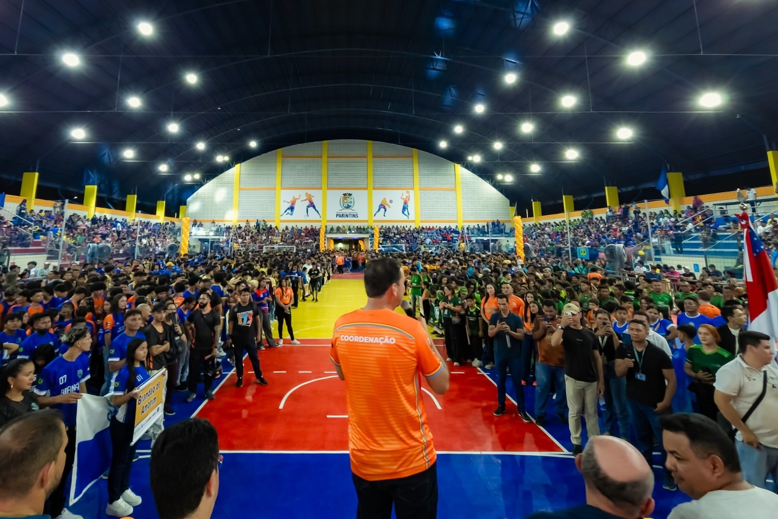 A Arena Olímpica Rubem dos Santos foi o palco da festa que reuniu 43 escolas e mais de 2.600 estudantes atletas da rede municipal, estadual, federal e do ensino privado, marcado por um clima de união, alegria e respeito ao esporte junto a atletas, professores e familiares, com a presença do prefeito de Parintins, Mateus Assayag, de secretários municipais e estaduais, vereadores e gestores das escolas participantes.