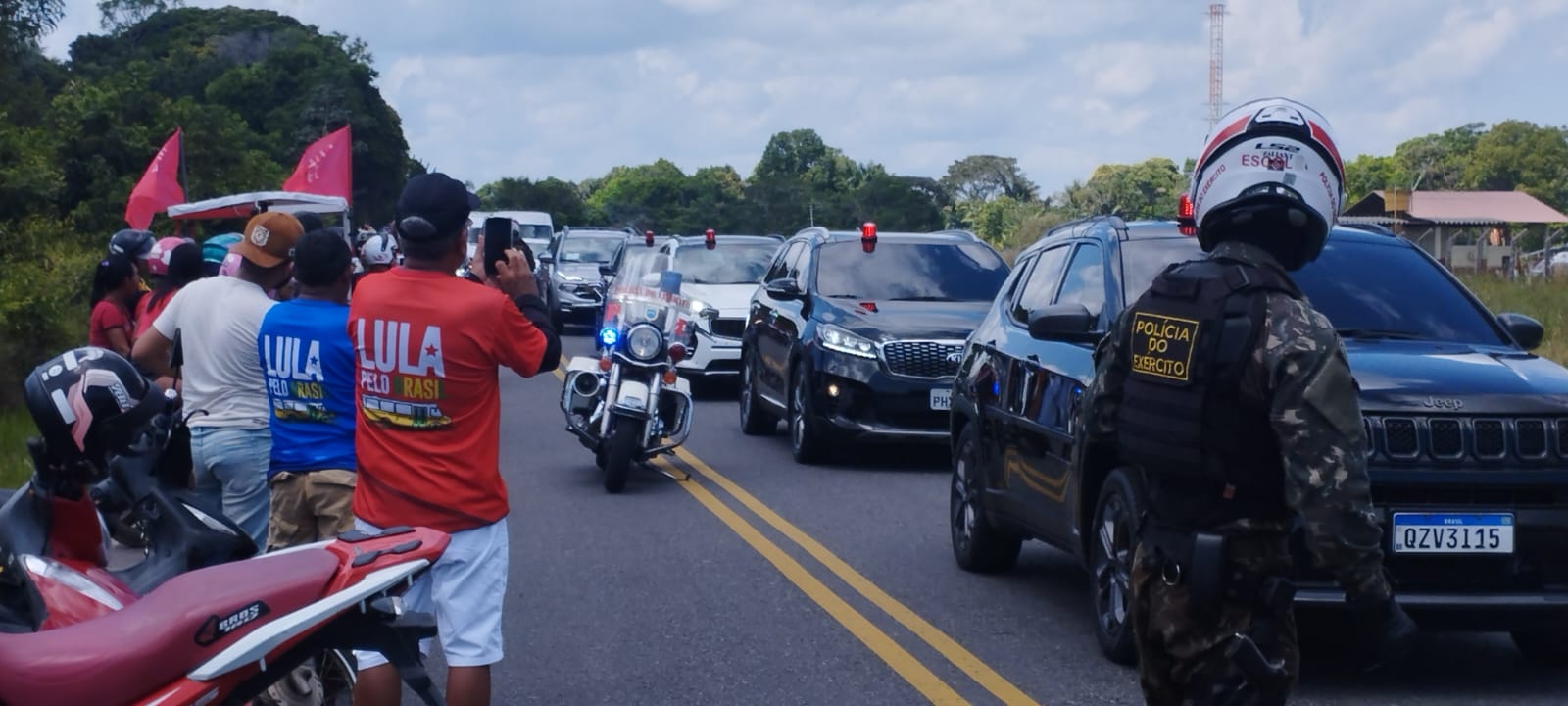 Lula chegou a Parintins por volta das 10:45 e de cara já foi recebido por milhares de pessoas que eu aguardavam próximo ao aeroporto. Com grande aparato de segurança e Em carro fechado o presidente Lula acabou comandando uma gigante passeata pelas ruas da cidade passando em frente à Cidade Garantido, bumbódromo, curral Zeca xibelão até chegar à Praça do Cristo Redentor.