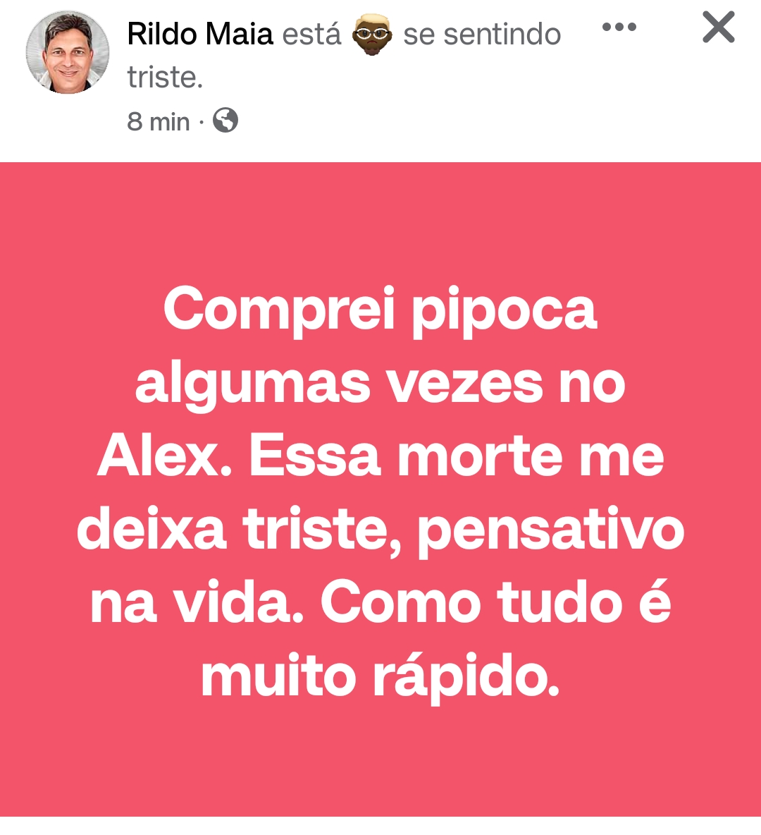 Nas redes sociais, muitas são as manifestações de pesar pelo falecimento de Alex Valente.