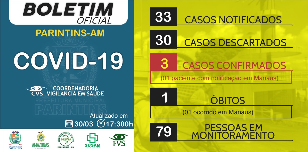 Após a avaliação retornou para a comunidade de origem. Dois dias depois houve a procura de benzedeira em outra comunidade próxima, não havendo melhora do quadro. No dia 25, procurou a unidade de saúde de referência da região, foi avaliado, detectado dificuldade respiratória e foi prontamente encaminhado para Parintins, onde foi diagnosticado com Pneumonia. Houve a coleta de amostra para COVID-19 pela Vigilância em Saúde do município, com resultado positivo nesta segunda-feira, 30 de março