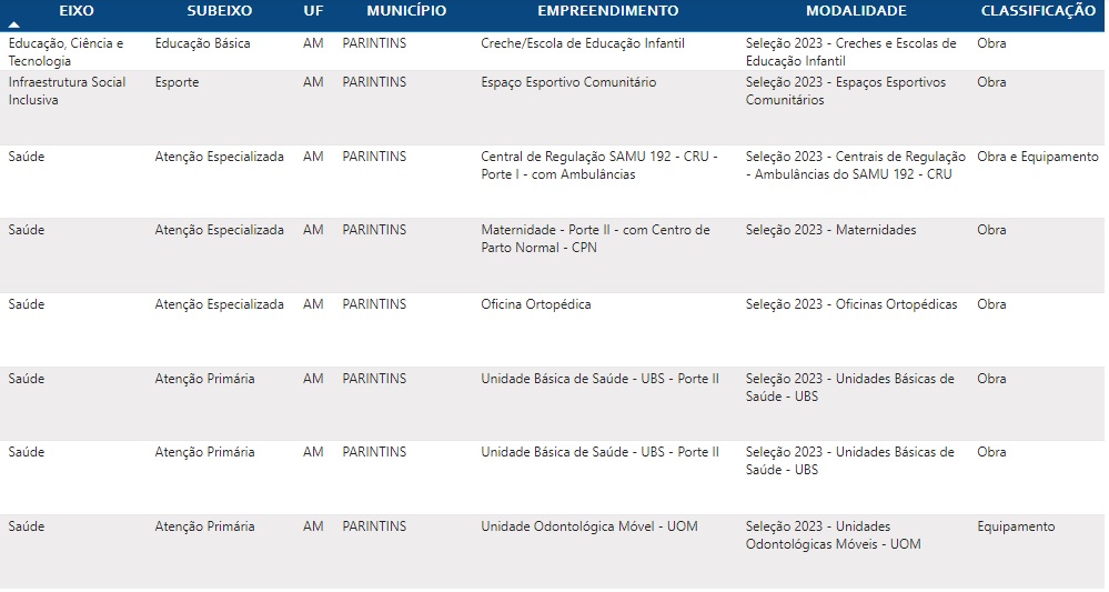 Parintins foi contemplado nas áreas de educação, Esporte e Saúde: