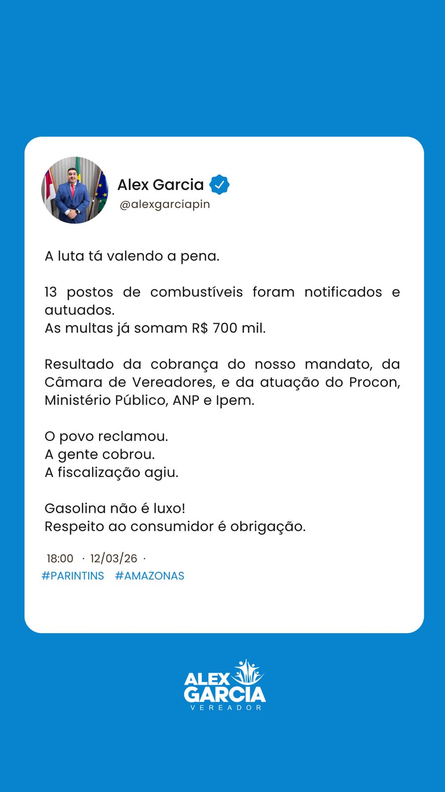 A operação ocorreu após uma mobilização da Câmara Municipal de Parintins, quando dez vereadores assinaram um pedido de fiscalização encaminhado ao Ministério Público do Estado do Amazonas (MPAM). A iniciativa foi liderada pelo vereador Alex Garcia, que tem acompanhado o caso desde o início das denúncias relacionadas aos preços dos combustíveis no município.