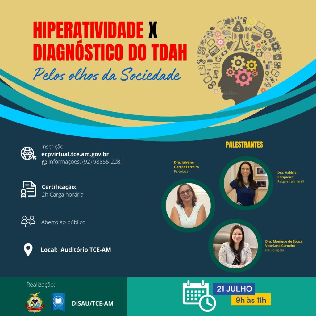 Dando continuidade à série de eventos voltados à saúde dos servidores e de seus familiares, o Tribunal de Contas do Amazonas (TCE-AM) promoverá, na próxima quinta-feira (21), a roda de conversa “Hiperatividade x Diagnóstico do TDAH – pelos olhos da sociedade”. O evento será realizado no auditório da Corte de Contas, das 9h às 11h, e contará com a participação de especialistas renomados na área de saúde mental.