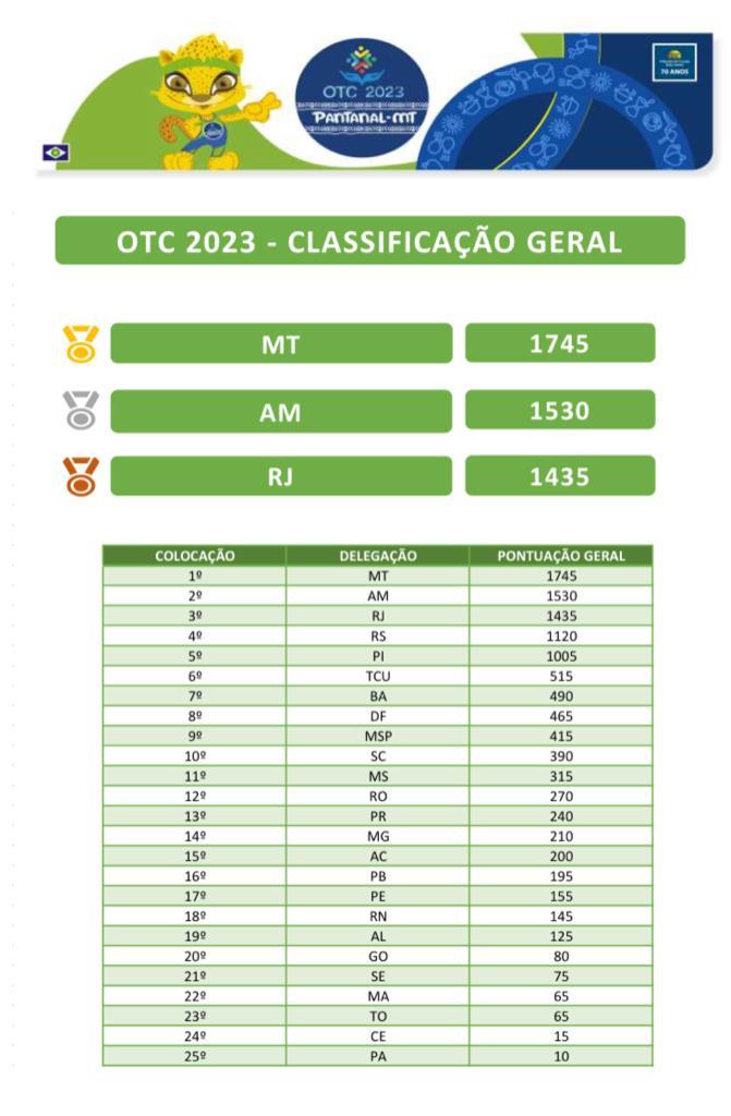 Conquistando 50 medalhas e 1530 pontos na classificação geral, o Tribunal de Contas do Amazonas (TCE-AM) bateu o recorde de desempenho nas Olimpíadas dos Tribunais de Contas (OTC 2023), realizada na última semana, em Cuiabá-MT.