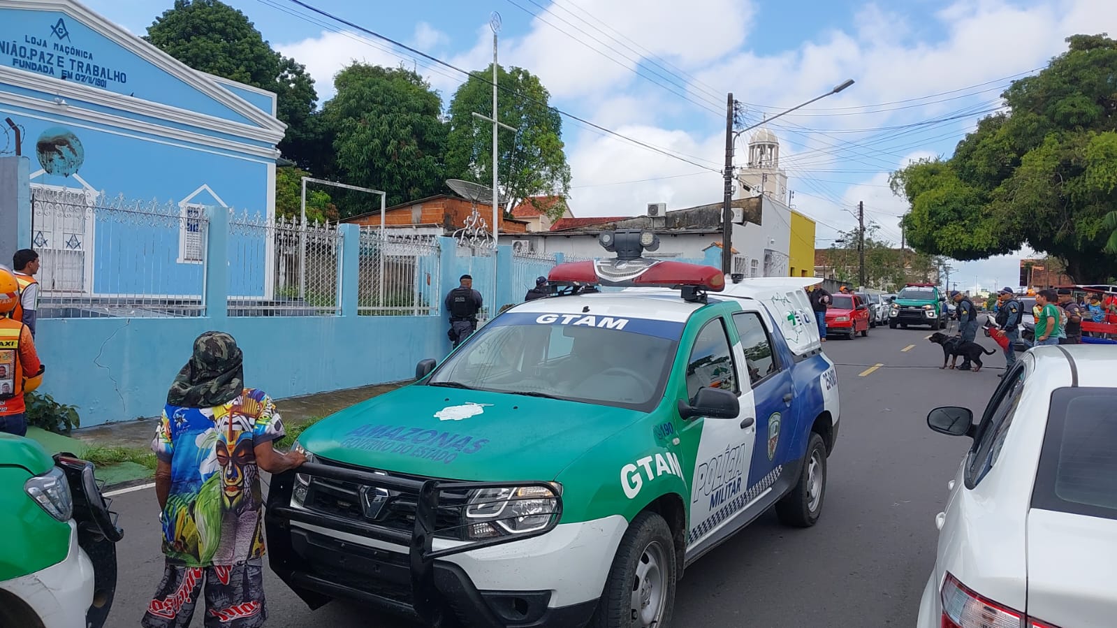 Curiosos acompanharam a ação do homem, chamaram a Polícia Militar que esteve no local e prendeu o sujeito. O 11º Batalhão da Polícia Militar de Parintins informou que ao chegar no local para intervir, acabou sendo ameaçada pelo homem, necessitando a atuação com maior firmeza para detê-lo.